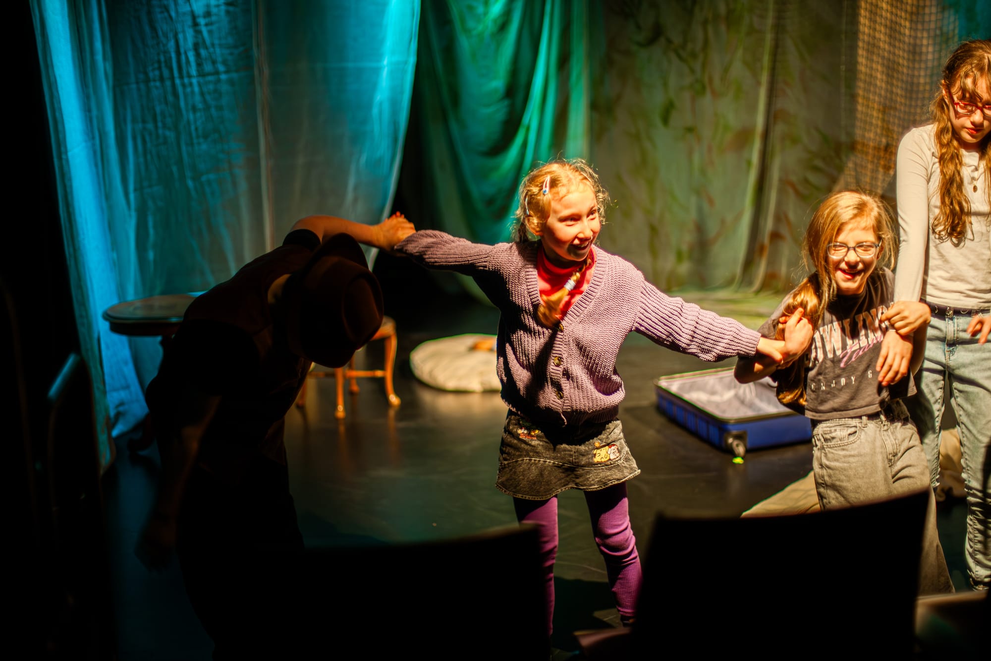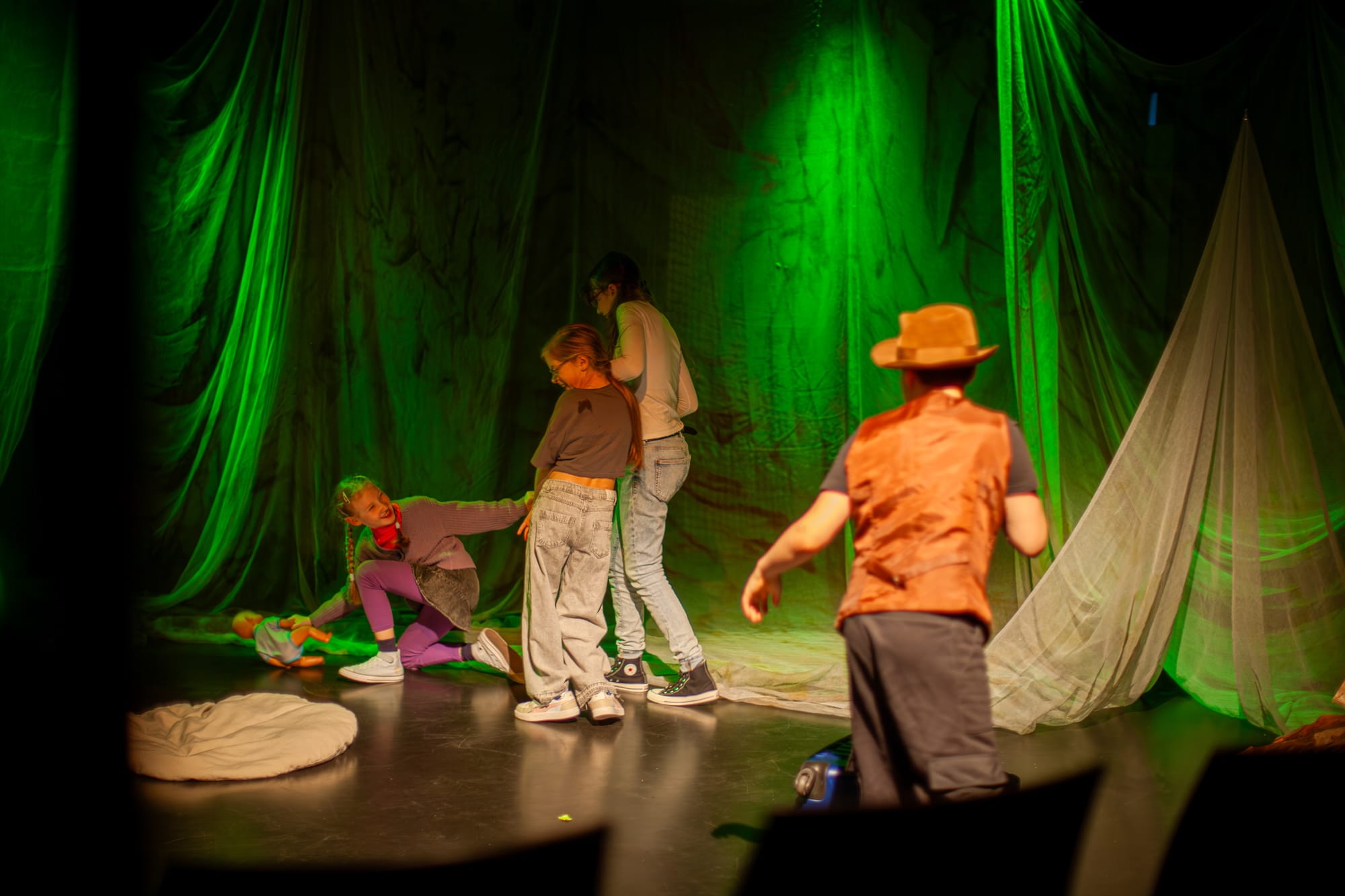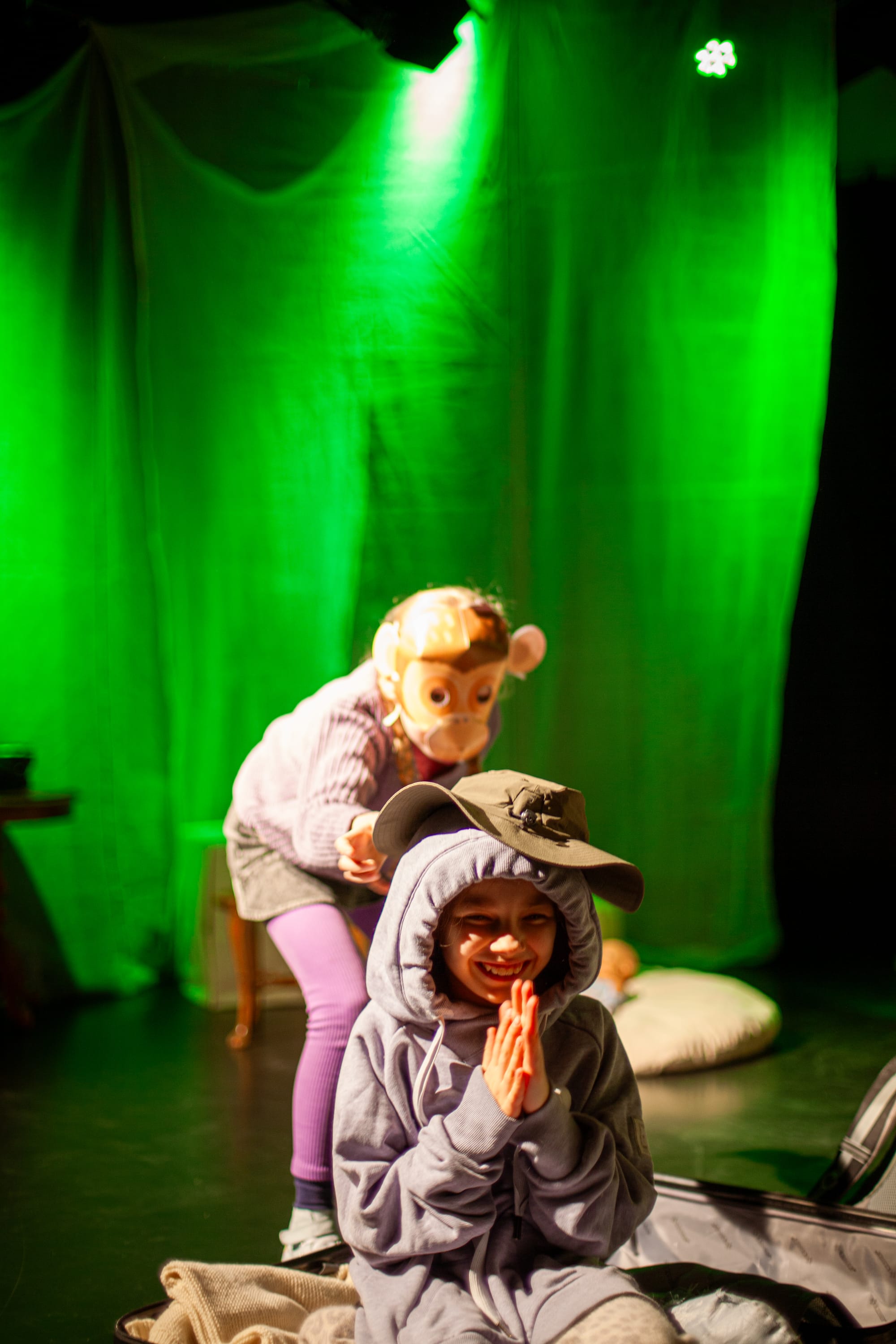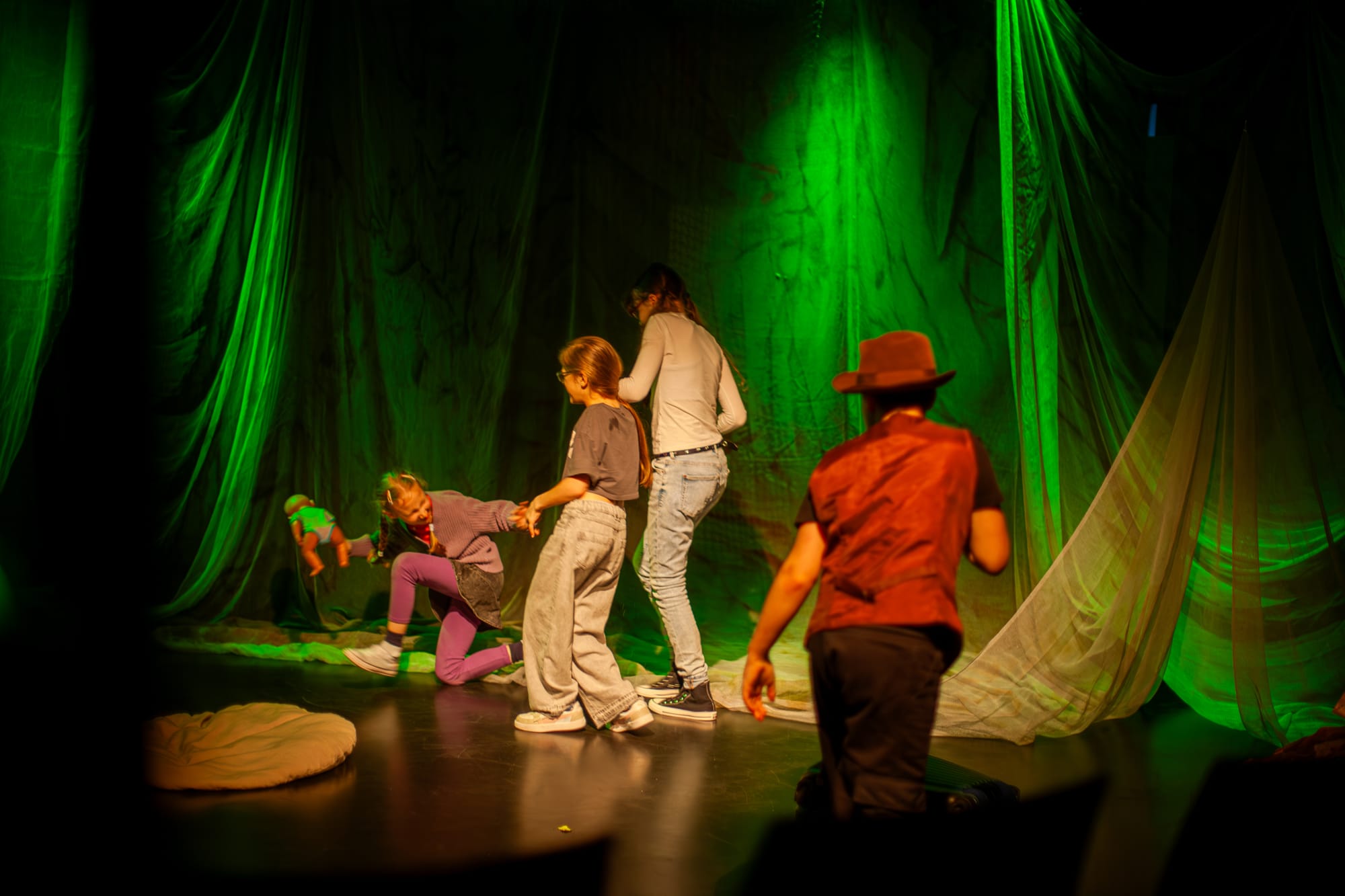 Unter theaterpädagogischer Anleitung entwickeln die Kinder ihr eigenes Stück- sie bestimmen den Ort, die Figuren und die Handlung.