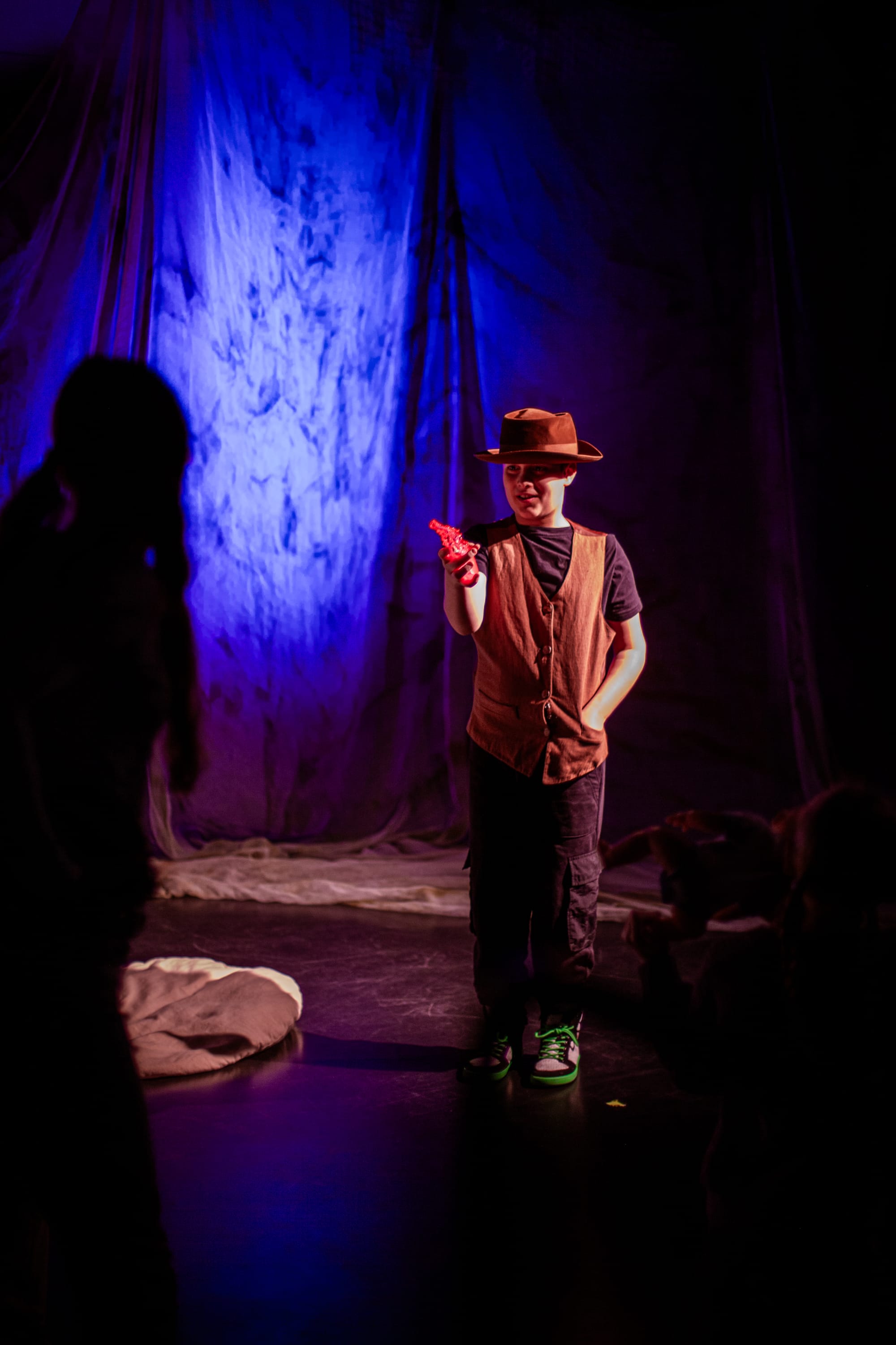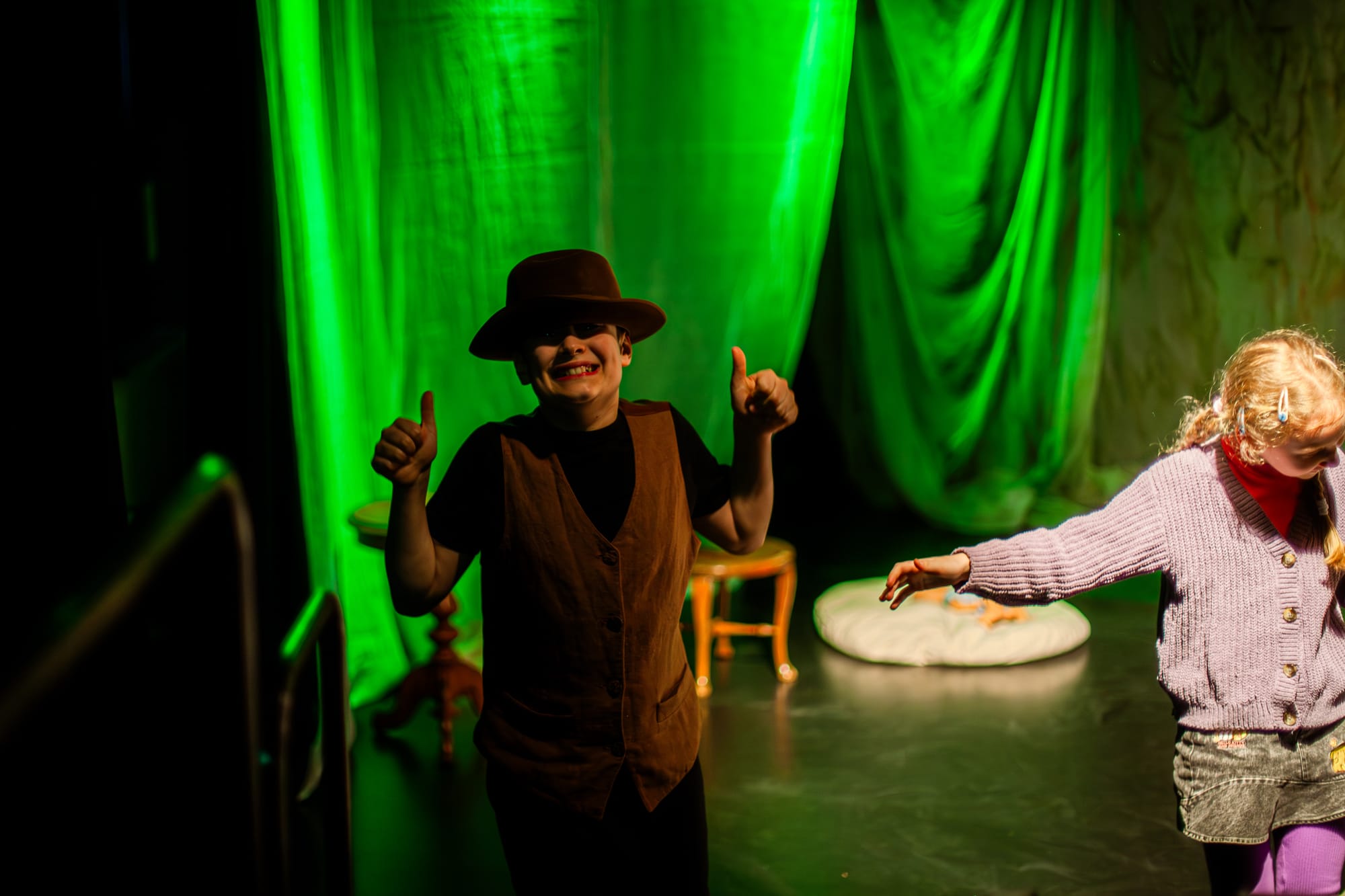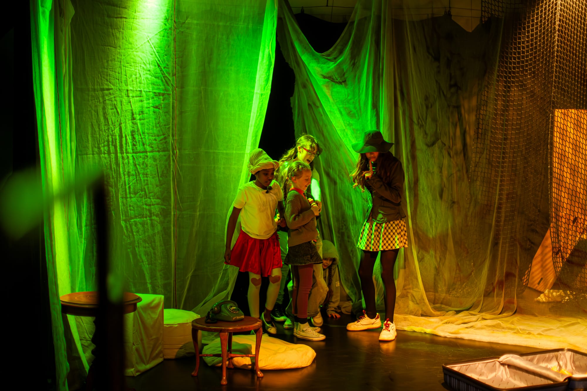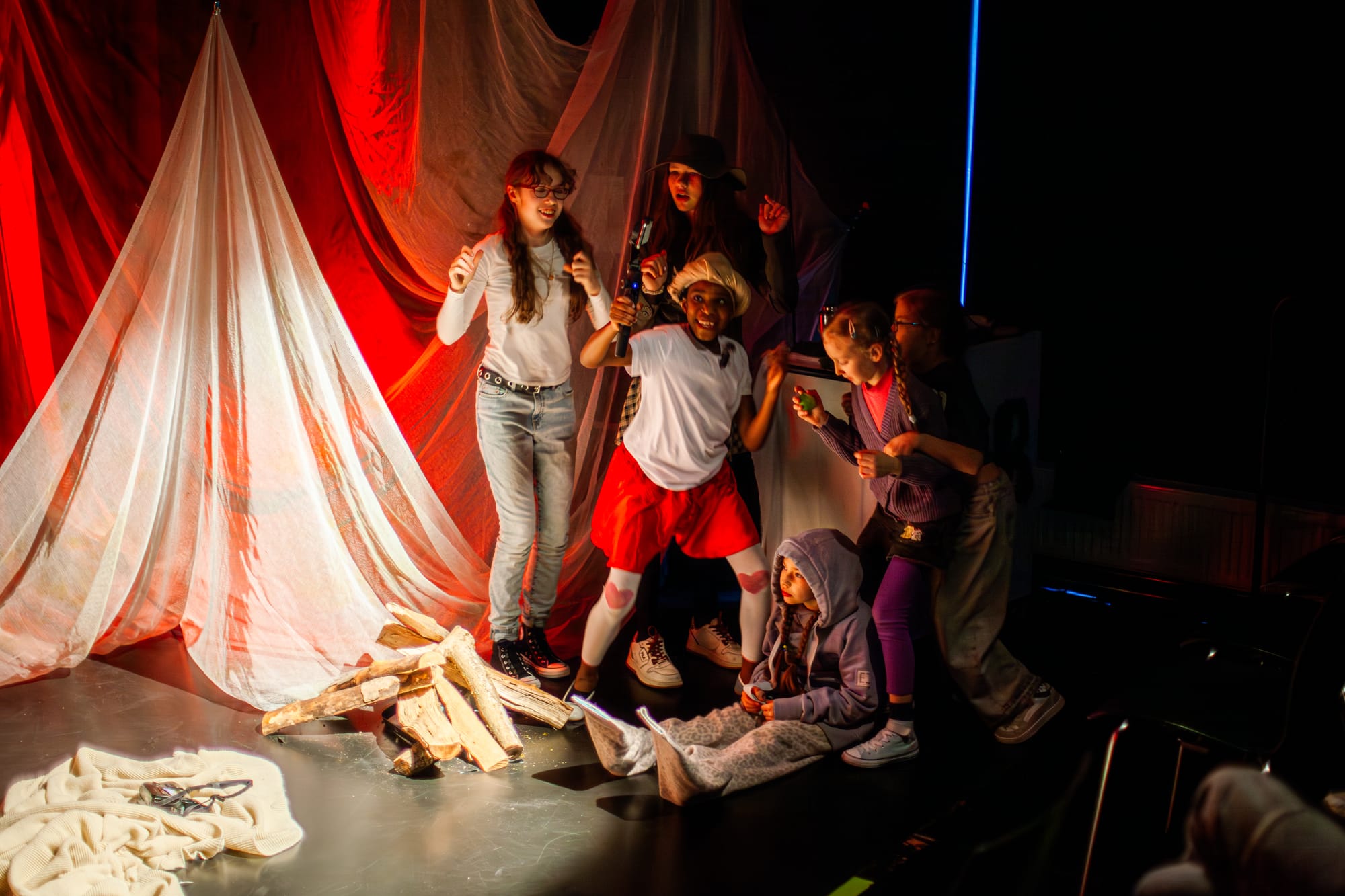 Unter theaterpädagogischer Anleitung entwickeln die Kinder ihr eigenes Stück- sie bestimmen den Ort, die Figuren und die Handlung.